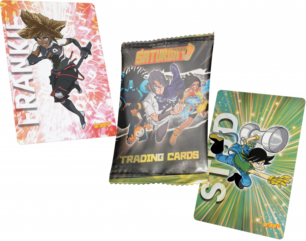 Twenty-six cards were printed on traditional trading card stock and packaged in a beautifully designed foil-stamped wrapper with the famous Saturday AM heroes and artists. WHYT MANGA, JEYODIN, ISSAKA GALADIMA, MORGANNE WALKER, and more of our global community of exclusive artists drew the art for each card. At the same time, co-founder Raymond Brown brought them to life with an extraordinarily vibrant design.